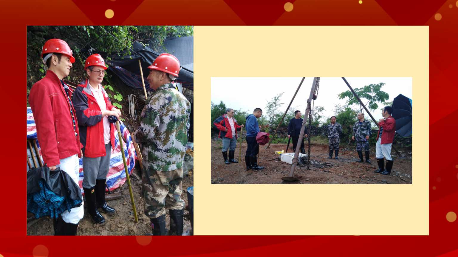 6月9-10日,公司黨委副書記、總經(jīng)理王和平,總經(jīng)理助理王倉(cāng)武帶領(lǐng)有關(guān)部門人員冒雨來到安康野外項(xiàng)目,對(duì)茨溝-棗陽(yáng)一帶金礦預(yù)查鉆探項(xiàng)目進(jìn)行安全檢查。