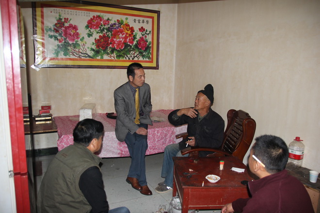 圖為隊長助理王倉武同志關(guān)切地詢問老人的飲食起居和身體情況