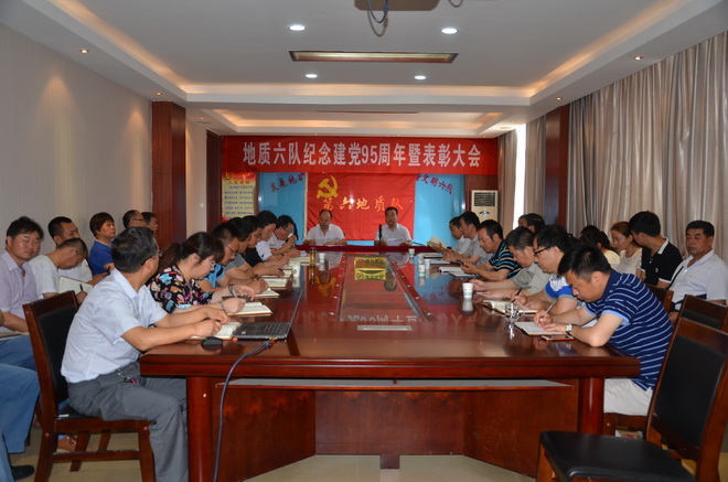 6月27日上午,我隊紀念建黨95周年暨“兩學一做”學習教育推進會在隊部三樓會議室召開。隊部地區黨員、離退休黨員代表、中層以上干部40多人參加了會議。省地礦總公司副總工程師、隊長王根寶主持會議,隊黨委書記王戰社為黨員干部講了主題黨課。