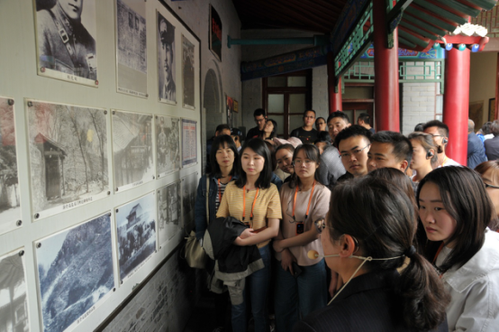 圖為團員青年職工在“西安事變”遺址前聆聽講解掠影