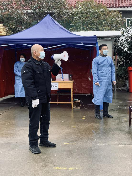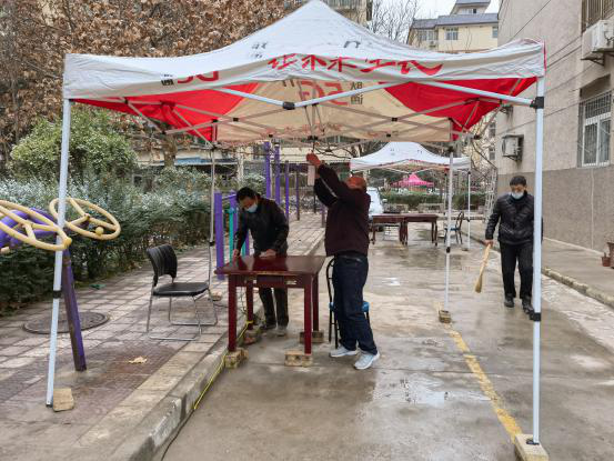 “微信運(yùn)動幾萬步”,確保每棟樓、每個人做核酸。受疫情影響,大家不能出門,只能待在家里,然而,六隊志愿者日行萬步卻成為常態(tài)。代王基地設(shè)置了代東社區(qū)核酸點(diǎn),西安基地設(shè)置了明園社區(qū)核酸點(diǎn)。每次核酸檢測志愿者都要與社區(qū)人員進(jìn)行對接,協(xié)調(diào)社區(qū)共計900人左右的核酸隊伍,維護(hù)現(xiàn)場秩序。“12號樓一單元的同志,下樓做核酸了”、“15號樓3單元的同志,下樓做核酸了”,為防止人員聚集,造成交叉感染,院內(nèi)租住的用戶都是志愿者一樓一樓的叫下來的。代王基地院子內(nèi)一共10棟樓,360人,西安基地一共4棟樓,290人。為確保不漏一戶、不漏一人,志愿者每次都要一次次的繞著院子來回的“喊”。除此之外,志愿者要在核酸檢測人員來之前擺好核酸檢測設(shè)施,拉好警戒線,連接網(wǎng)絡(luò)專線、通電、安裝照明燈,一片都不漏的對場地以及進(jìn)院子的人員進(jìn)行徹底消殺。在核酸檢測結(jié)束,人員離開場地后,志愿者仍然堅守在崗位上,因為他們還要將醫(yī)用垃圾專員清理拉走,再次對場地及人員做一次徹底消殺。在維護(hù)核酸檢測隊伍秩序時,面對不理解、抱怨聲,他們選擇用真情感染者每家每戶。